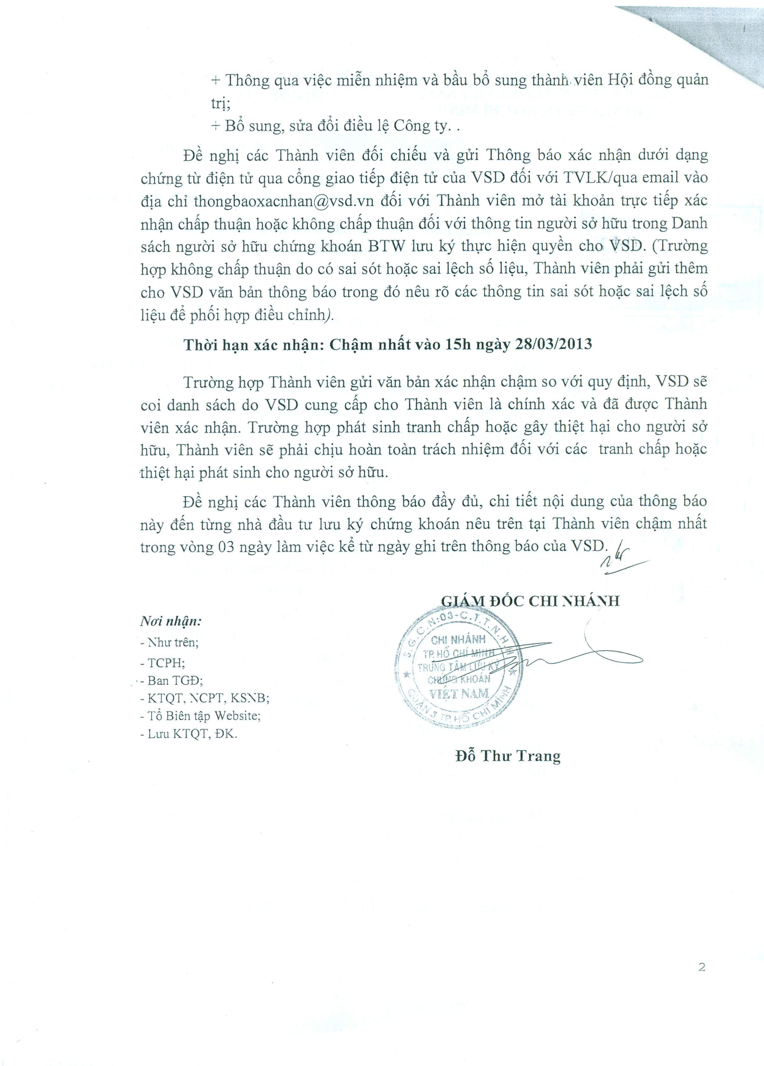 Thông báo về ngày đăng ký cuối cùng và xác nhận danh sách người sở hữu chứng khoán.